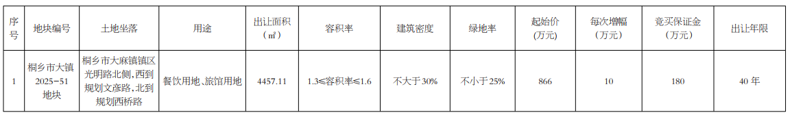 經桐鄉市人民政府批準,桐鄉市自然資源和規劃局對下列地塊的土地使用權采用拍賣方式出讓。 現將有關事項公告如下:
