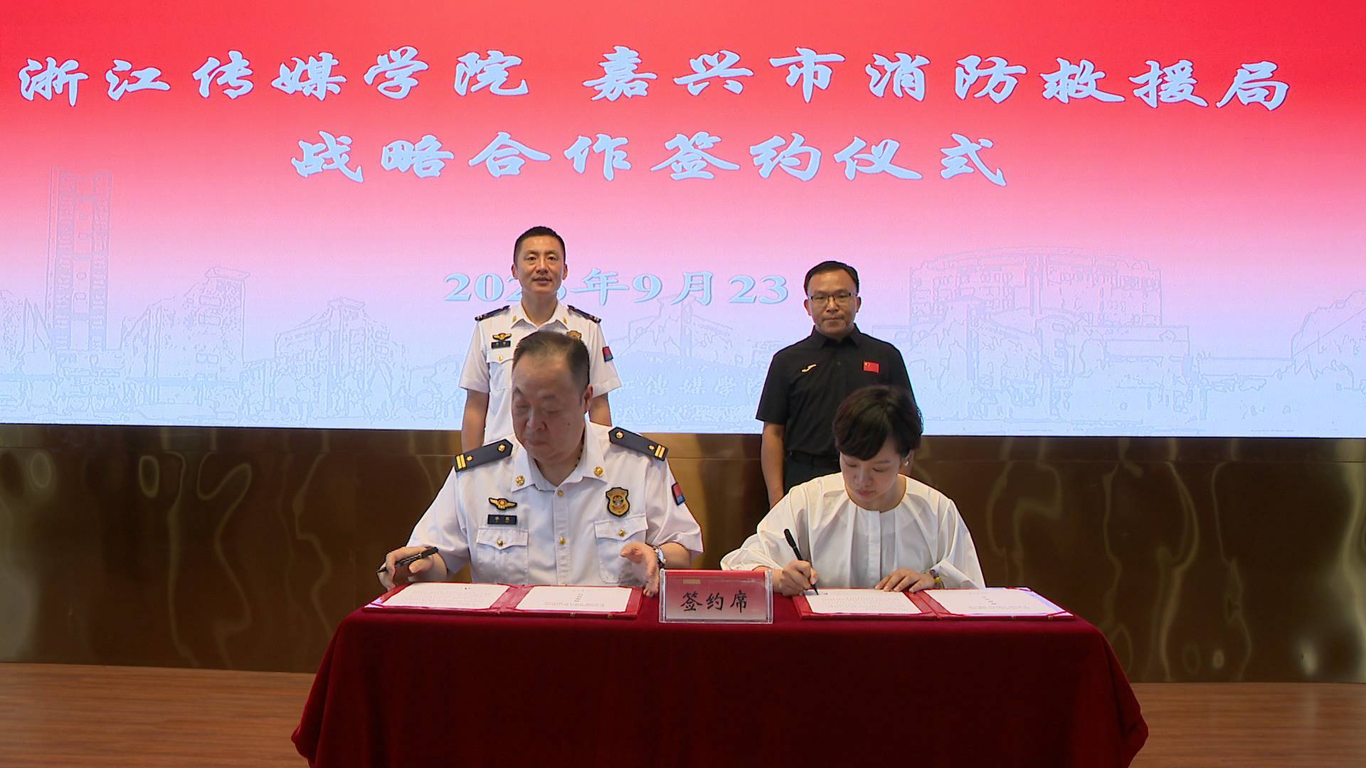 活動中,嘉興市消防救援局與浙江傳媒學院正式簽署了戰略合作框架協議,還為消防安全文化傳播基地揭牌。活動結束后,120名學生上了一堂消防安全公開課。