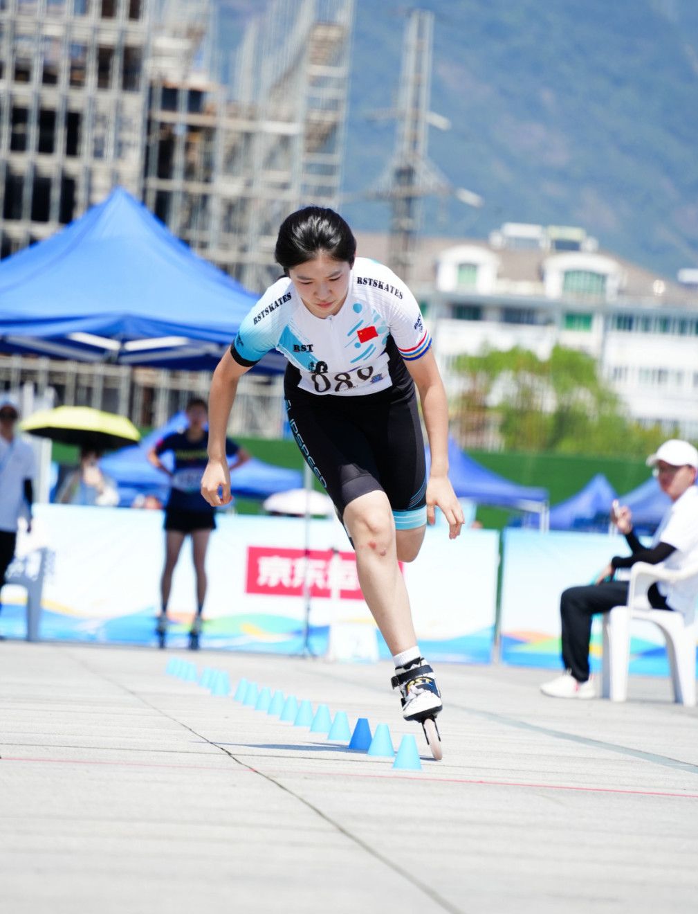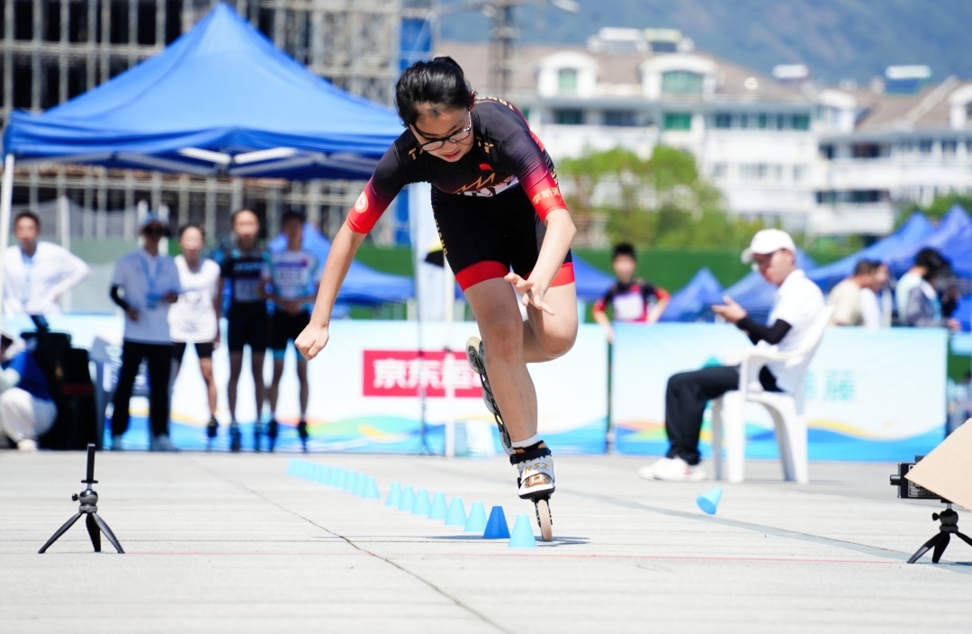 “加速!向前沖!”在此起彼伏的加油和吶喊聲中,腳踩“風火輪”的桐鄉輪滑選手們化身“追風少年”,以矯健的身姿、嫻熟的技術,不斷向前沖。”