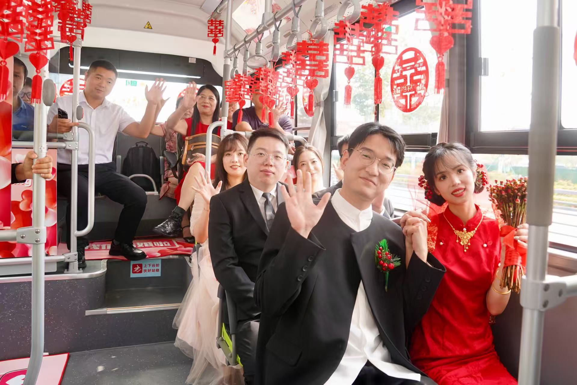 作為追求個(gè)性的“95后”,倪鵬飛和黎堇禾一直希望自己的婚禮能與眾不同。“在社交平臺(tái)上看到公交婚車后,覺得特別有意思,氛圍好,又環(huán)保。”倪鵬飛說,主動(dòng)聯(lián)系了桐鄉(xiāng)公交公司后,雙方一拍即合。