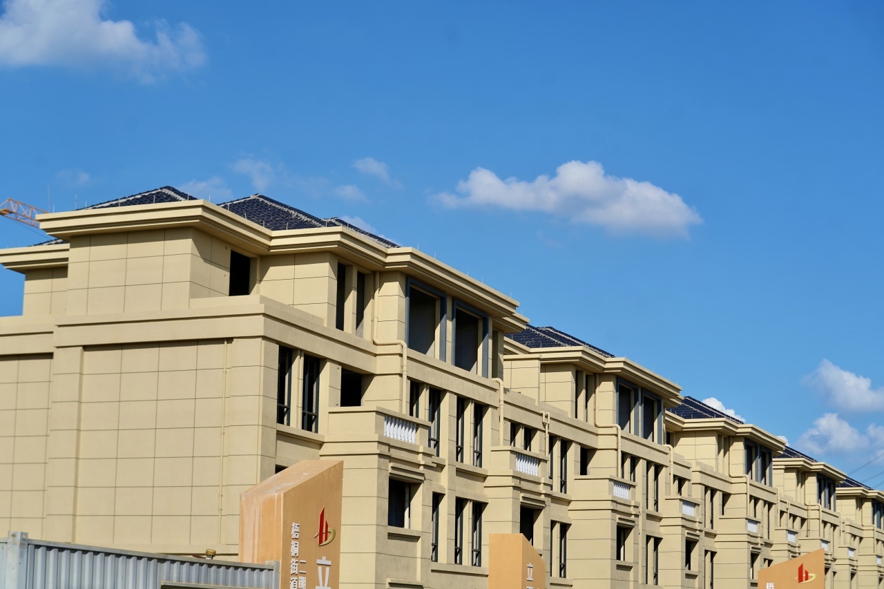 沿著二環東路出主城區,沿路就能看到錦梧小區二期一排排整齊的聯排別墅:標志性的黛瓦屋頂保留了江南的建筑特色,簡約大方的建筑主體也突出現代建筑的時尚感。