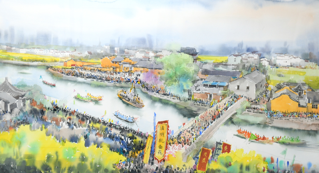 粉墻黛瓦旁,小橋流水、槳聲欸乃;夕陽余暉下,運河宛轉、一曲千年。52幅畫作,從古鎮深巷到現代園區,勾勒出桐鄉的肌理與氣象。