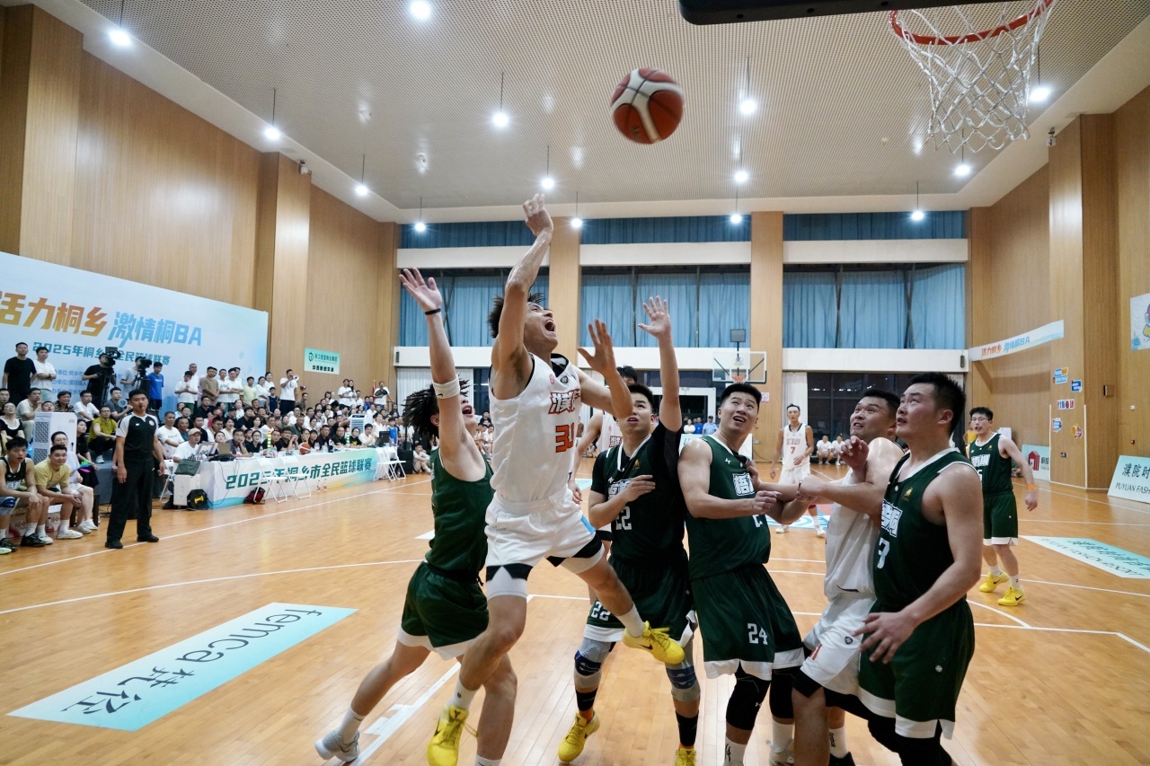 第二節哨聲響起,比賽迅速陷入“膠著戰”,雙方攻防拉扯不斷,比分始終緊咬。當梧桐街道隊憑借強勢進攻,逐漸占據上風時,濮院鎮隊23號車曉磊以一記精準遠投三分,瞬間點燃全隊氣勢。最終上半場以28:33落幕,為下半場比賽留足了懸念。