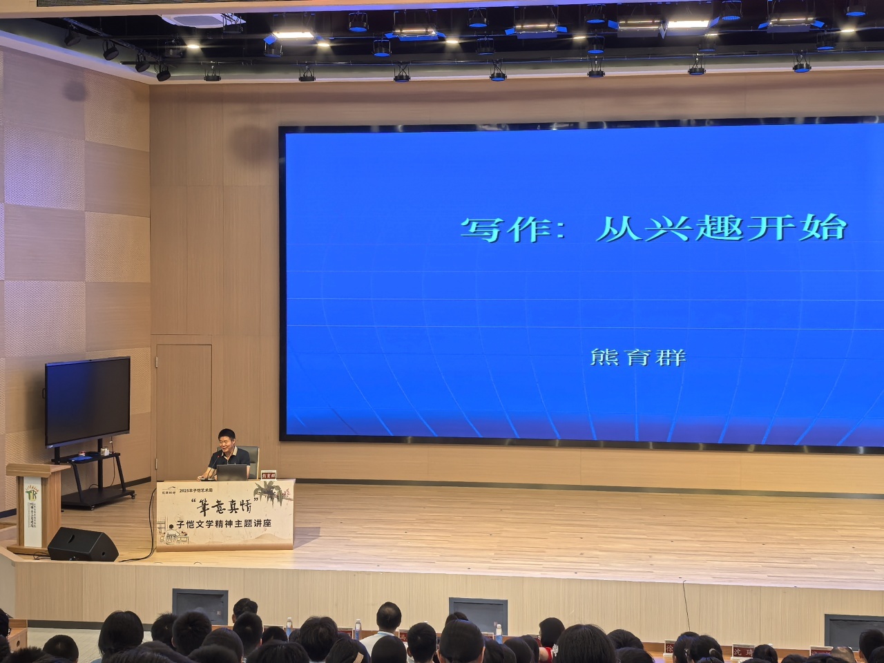 “如何成為一個作家?興趣是最好的老師。做自己喜歡做的事情才會成功。”熊育群以《寫作:從興趣開始》為題,從自身經歷娓娓道來。他回憶起7歲時第一次來到小鎮,用3毛錢買了一本書的故事,正是這本書為他開啟了通往文學世界的大門。從一名工科生到自學走上文學之路,他向學生們詮釋了興趣在寫作道路上的重要性。