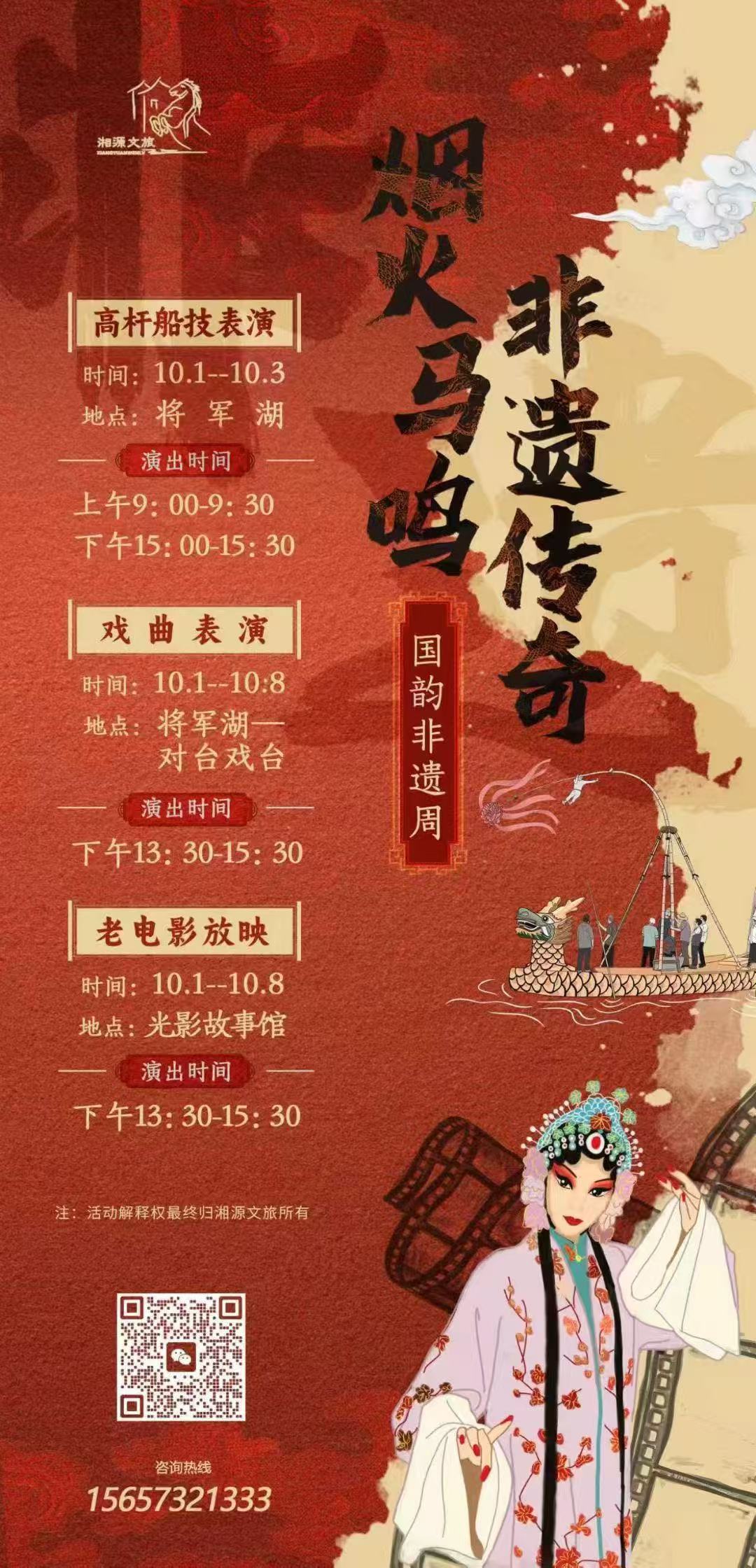假期期間,馬鳴村將每天安排非遺演繹,表演項目主要有國家級非遺高桿船技、對臺戲等,光影故事館也將推出國慶電影周活動,免費放映經典電影。
