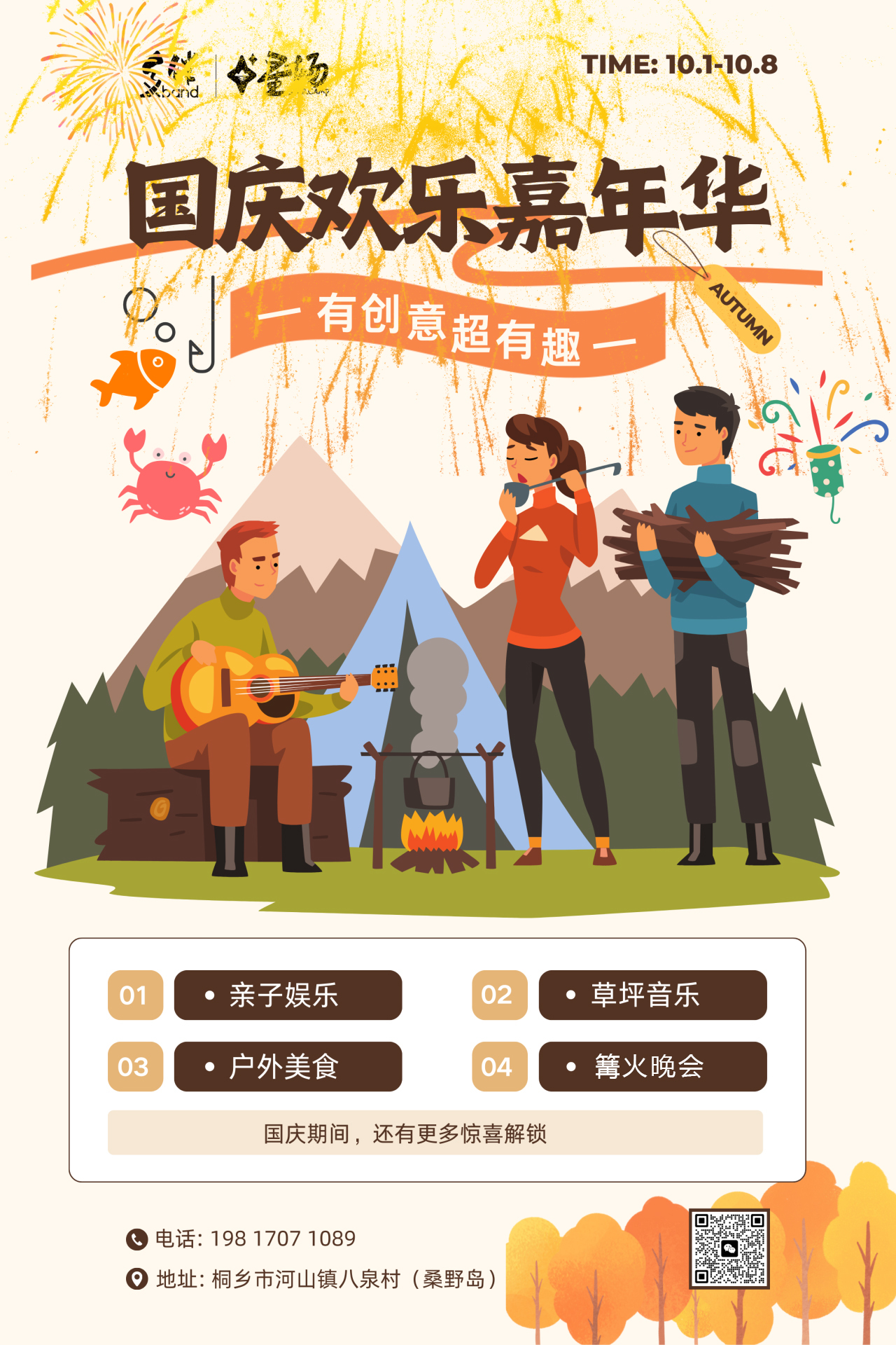 以戶外野趣為核心導向,通過承載“多元化+多場景”的新型郊野生活體驗,以“露營無邊”為主題,島內有野鄰Mall、野食餐廳、野鄰學堂、ATV越野、無動力樂園、繩索棧道—高空網陣探險、競技飛盤、皮劃艇、垂釣和燒烤野炊等新奇有趣的體驗。